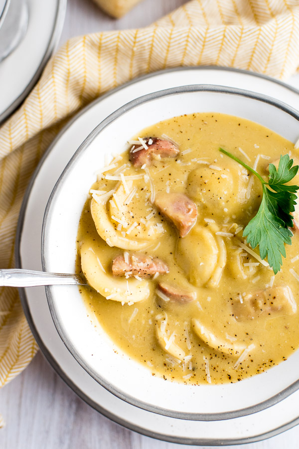 Be prepared for a war over who gets the last scoop of this soup! Butternut squash gets puréed into a silky smooth soup that coats each mini cheese ravioli like a dream. No child or picky adult will know or care that they’re indeed eating a giant bowl of vegetables! Enjoy vegetarian style or amp up the protein with a side of sliced sausage.