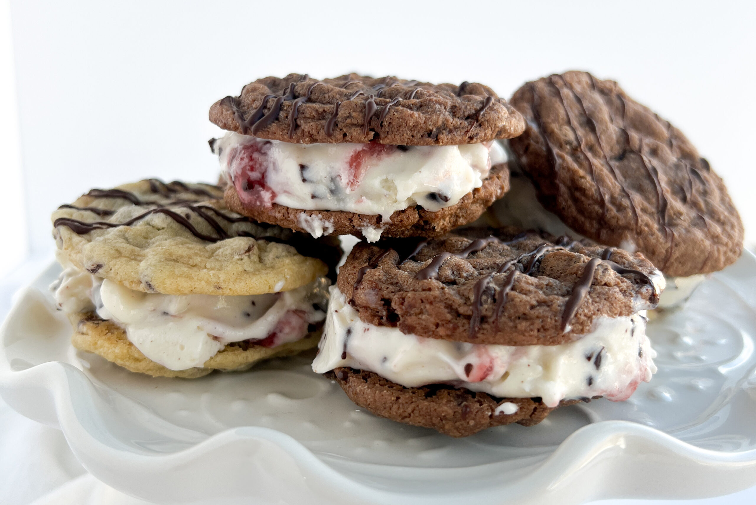 White Chocolate Raspberry “Double Drizzle” Ice Cream Cookie Sandwich